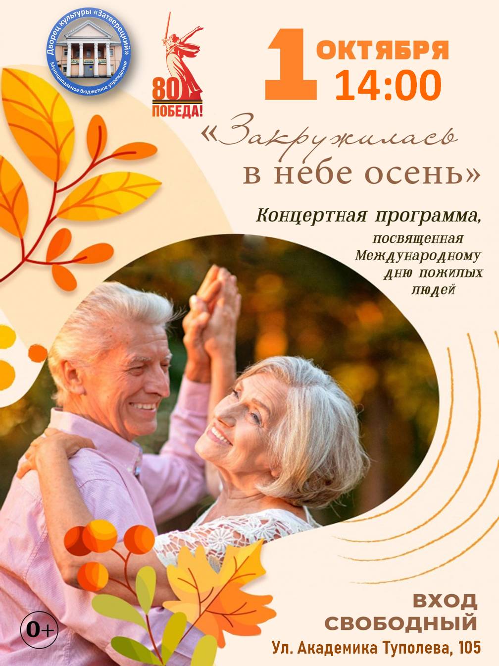 Дворец культуры «Затверецкий» приглашает жителей и гостей города на праздничную концертную программу «Закружилась в небе осень», посвященную Международному дню пожилых людей.