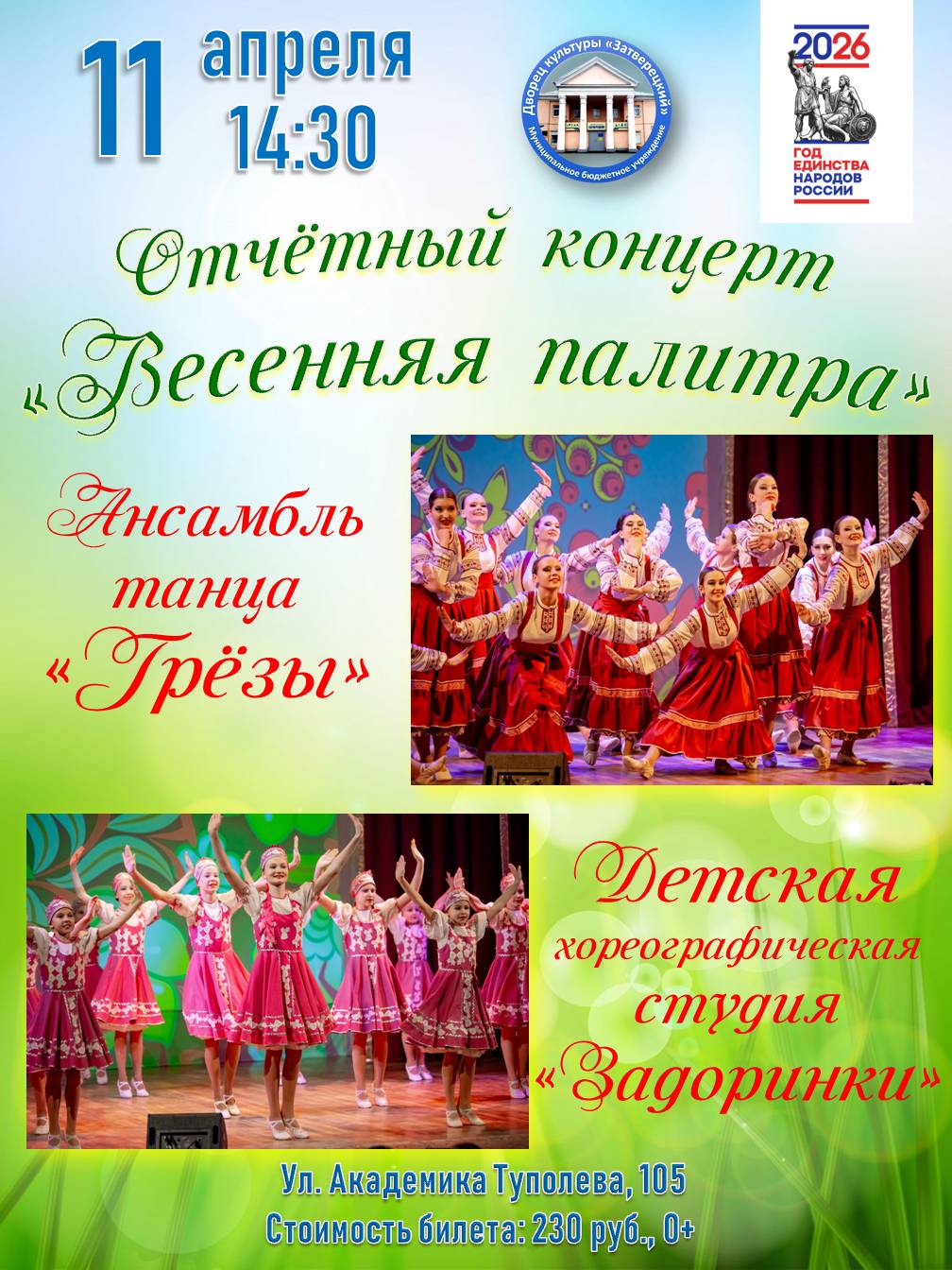 Танцевальная феерия красок: Ансамбль танца «Грёзы» и детская хореографическая студия «Задоринки» представят отчетный концерт «Весенняя палитра».