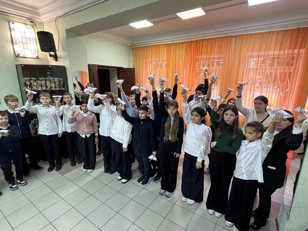 Завершилась программа символичным мастер-классом в рамках Всероссийской акции памяти павших воинов России «Дни белых журавлей». Каждый школьник смог своими руками сделать из бумаги белого журавлика – образ, навеянный знаменитой песней «Журавли» и ставший символом памяти о павших героях. Этих журавликов ребята забрали с собой как личное напоминание о подвиге поколения победителей и о долге хранить эту память в своих сердцах.