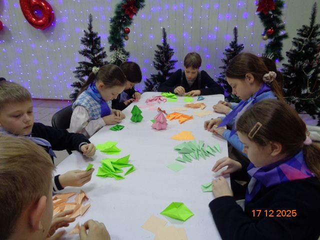 В этот день, ребята вместе с работниками ДК «Затверецкий» создавали новогоднюю атмосферу собственными руками, а именно новогоднюю ёлочку в технике оригами. В процессе такой деятельности у детей была активно задействована вся мускулатура кисти, что положительно влияет на развитие мелкой моторики. Все дети проявили старательность и творческий подход, и с большим успехом справились с заданием, создав замечательные работы!