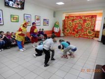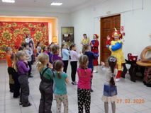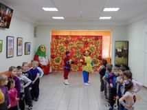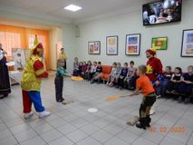 Хозяюшка пригласила детей в уютную «горницу» на забавы народные, да игры весёлые. На развернувшейся игровой площадке не давали заскучать ребятам потешные Скоморохи, вовлекая в командные игры, такие как «Блиномёт», «Горячий блин», «Заря-заряница» и другие. В ходе программы ребята узнали и запомнили название каждого дня масленичной недели.